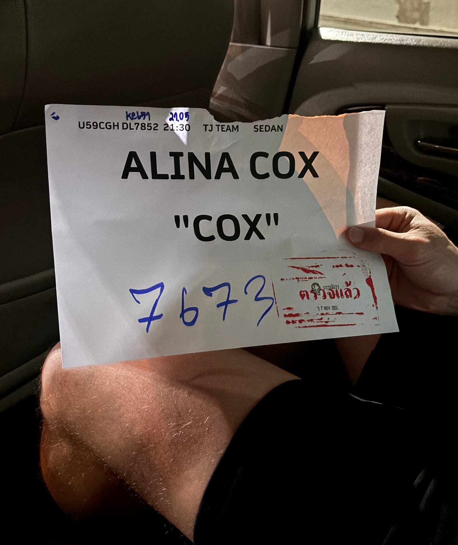 Likely passing it 3 times, we found it taped to other pick-up signs dangling from a rail. The person stationed there took our photo and told us to stand at Platform 4 to await our driver. Good idea taking our photo to send, because it was the only way our driver knew to flag us helpless foreigners down in carline.
